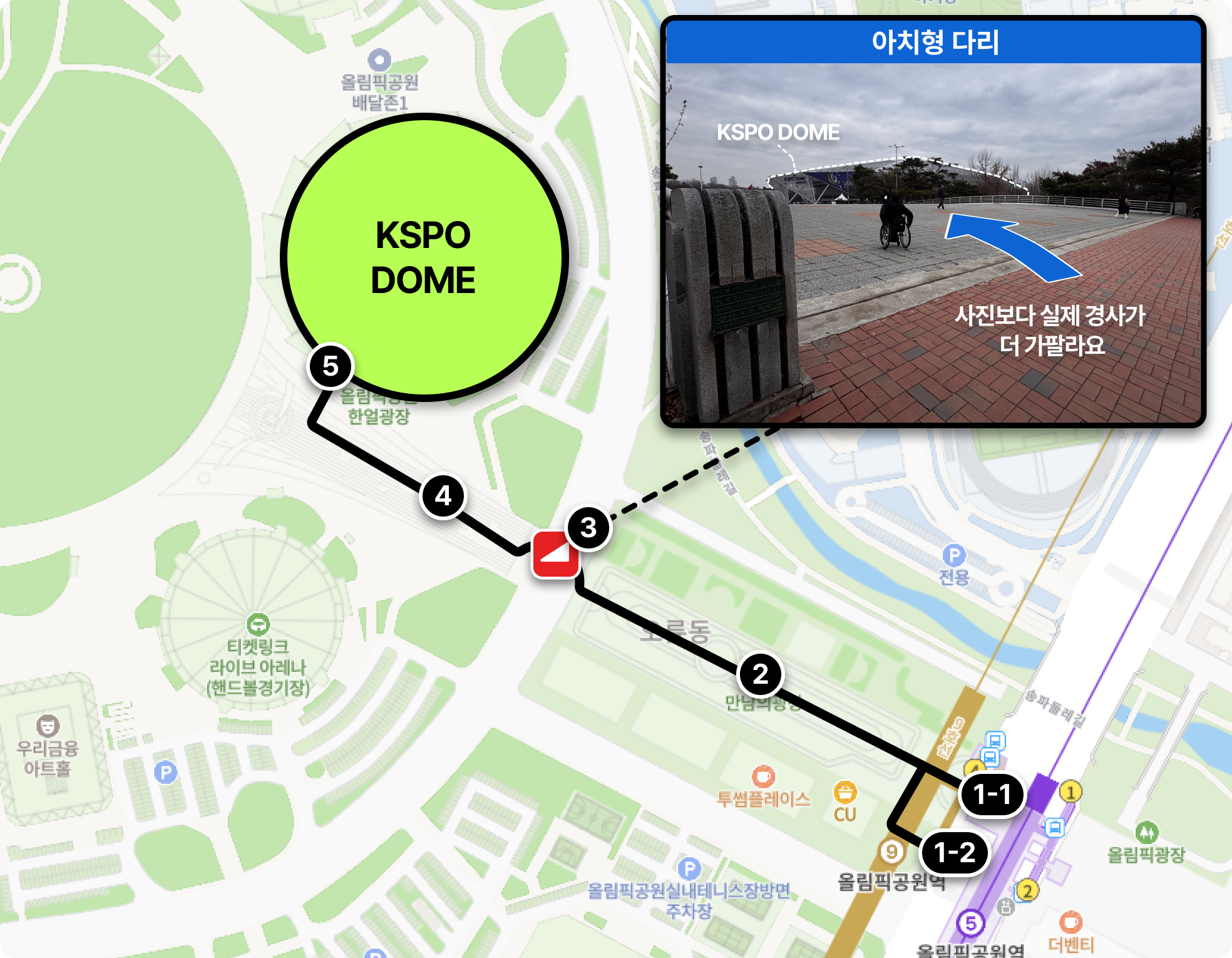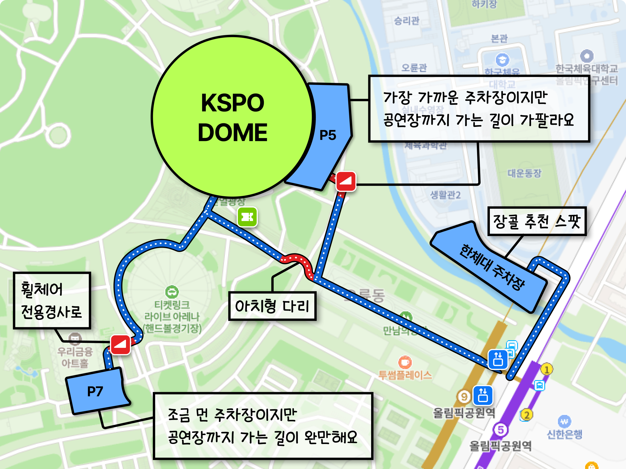 KSPO DOME 갈 때, 수동휠체어 타고 경사 빡센 곳을 힘들어 하신다면 P6-7을 추천해요!